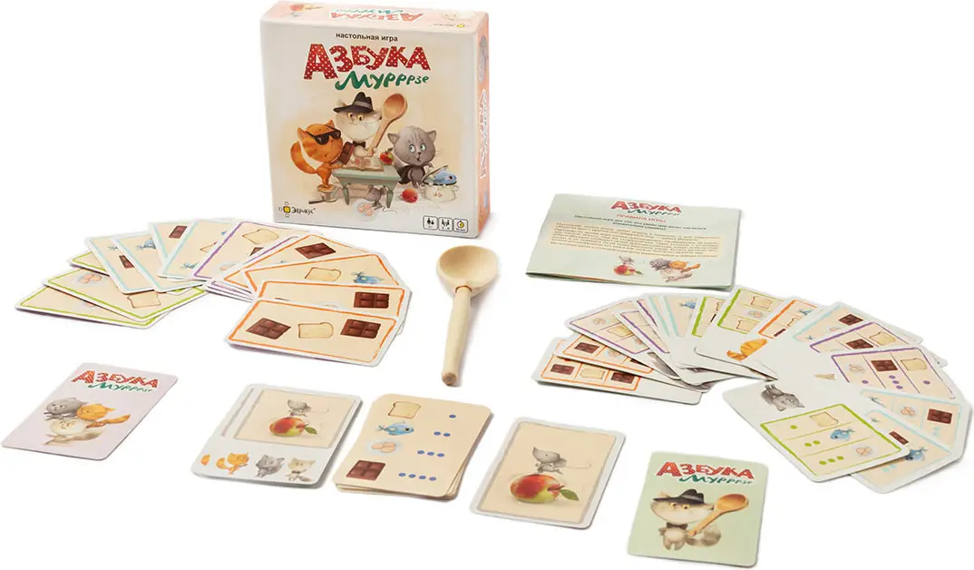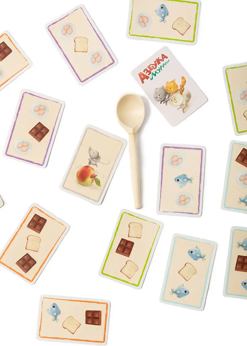 Настольная игра Азбука Мурррзе от бренда Эврикус – активная, яркая, с забавной темой. Игра основана на количестве слогов в словах. Каждый слог отбивается ударом ложки о стол, а число ударов определяет слово. Игра помогает детям почувствовать слоговую структуру слова.