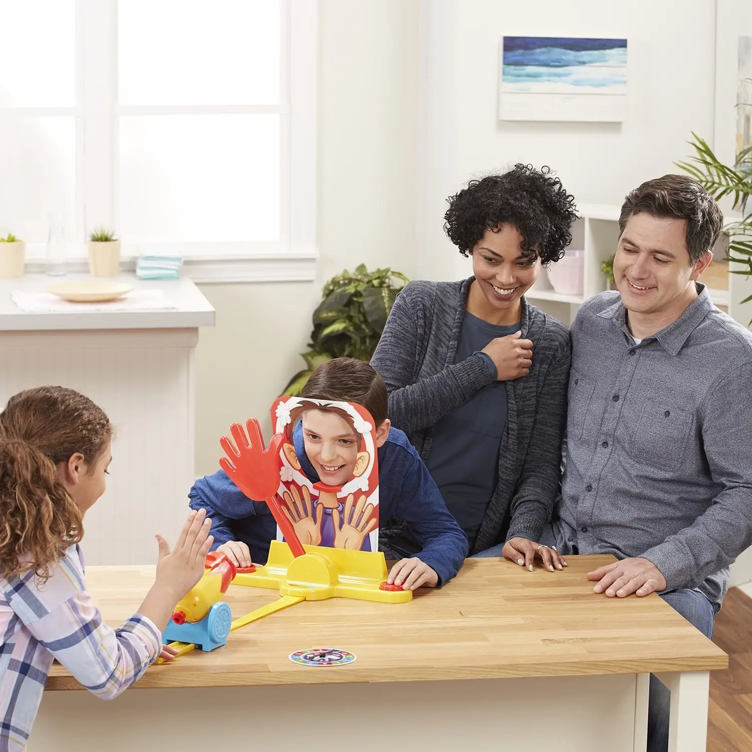 Она подарит море позитивных эмоций, смеха и радости. Игрушка выглядит очень ярко и красочно, это небольшая конструкция, состоящая из подставки, отверстия в которое участник должен просунуть голову, кнопок и рычажка в виде ладошки. Но только на этот раз ладошка станет настоящей защитой от торта, мороженного, взбитых сливок или других лакомств, которые могут прилететь в лицо участника прямо из пушки.