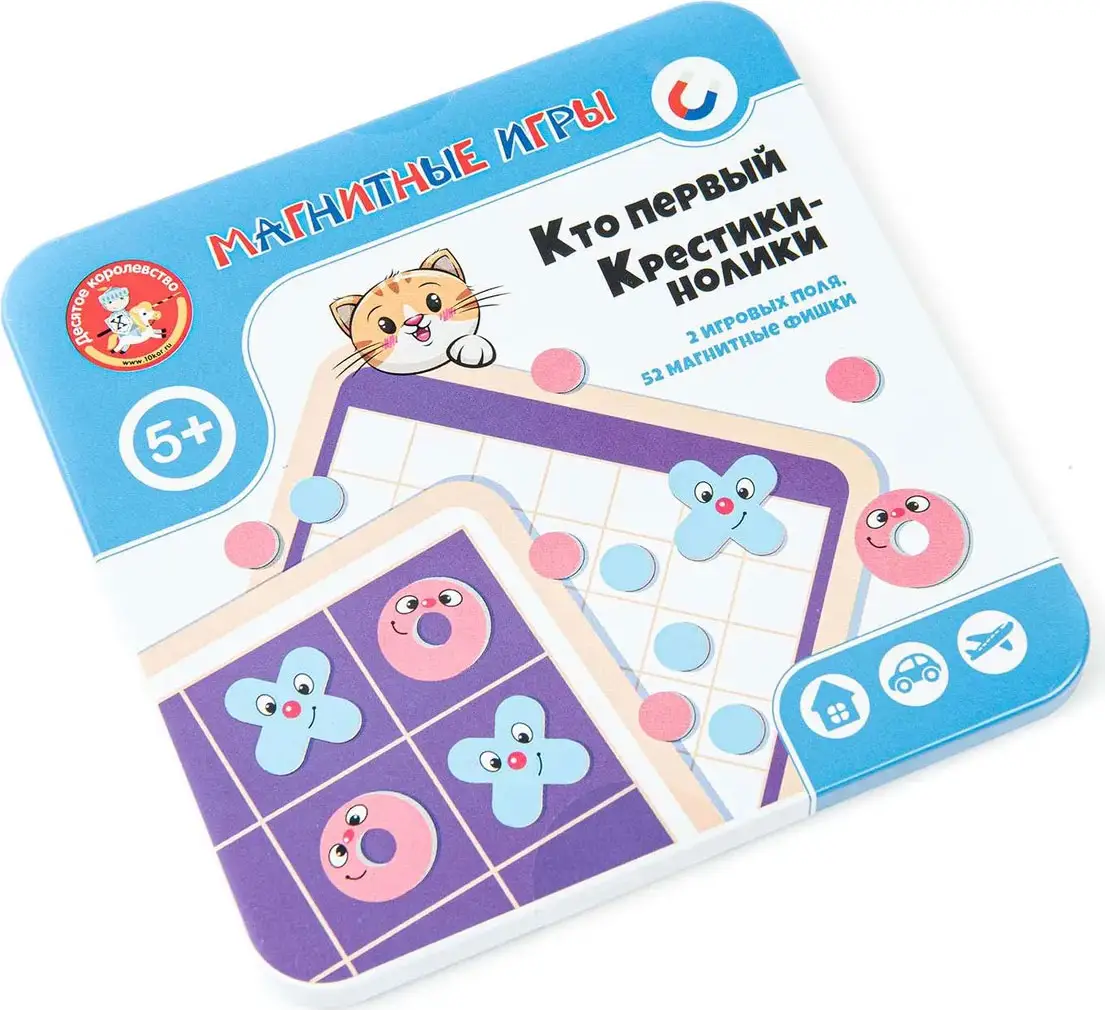 Настольная Игра Десятое королевство – «Кто первый» и «Крестики-нолики». Играть можно как вдвоём, так и небольшой компанией. Игра представляет собой коробку, с одной стороны которой – поле для игры в «Кто первый», а с другой – в «Крестики-нолики». Игра способствует развитию логики и стратегического мышления ребенка.