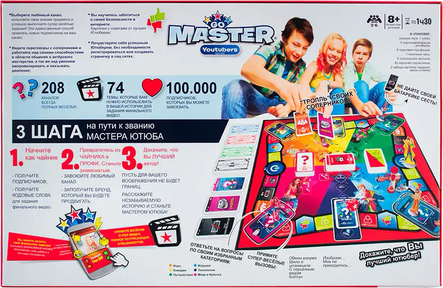 Настольная игра Go Master Youtubers, позволит вам создать собственный видеоканал и развлечься в компании друзей!