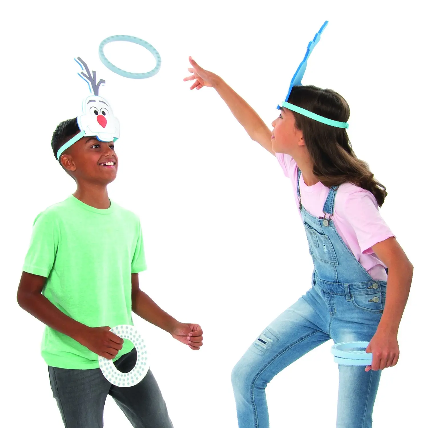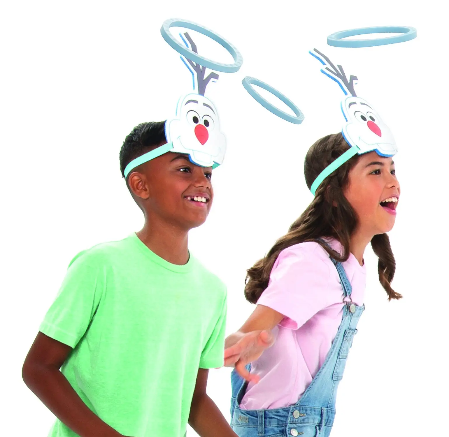 Подвижная игра в стиле «Холодное сердце 2» с необычными масками снеговика Олафа и кольцами. Участник с маской, которая надевается на голову с помощью резинки, должен поймать кольца, который кидает второй участник. В игре можно участвовать командами по 2 человека.