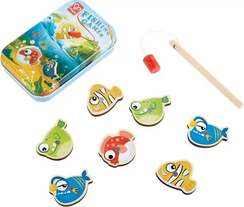 Увлекательная магнитная рыбалка от бренда Hape где игроки по очереди ловят рыбу, пока все кусочки рыбы не попадутся на крючок. Сложите все числа, и игрок с наибольшим количеством очков станет победителем.