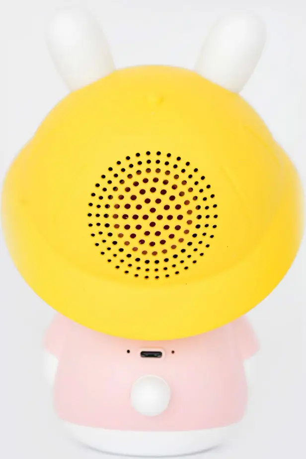 - ушки зайки мягко переливаются разными цветами;