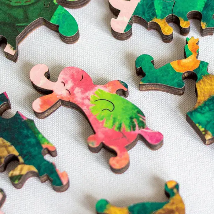 Яркий и необычный деревянный пазл Davici состоит из деталей с фигурным резом, и этим выгодно отличается от обычной головоломки, состоящей из множества частей. Пазл позволяет наслаждаться самим процессом сборки благодаря присутствию стилизованных форм деталей.