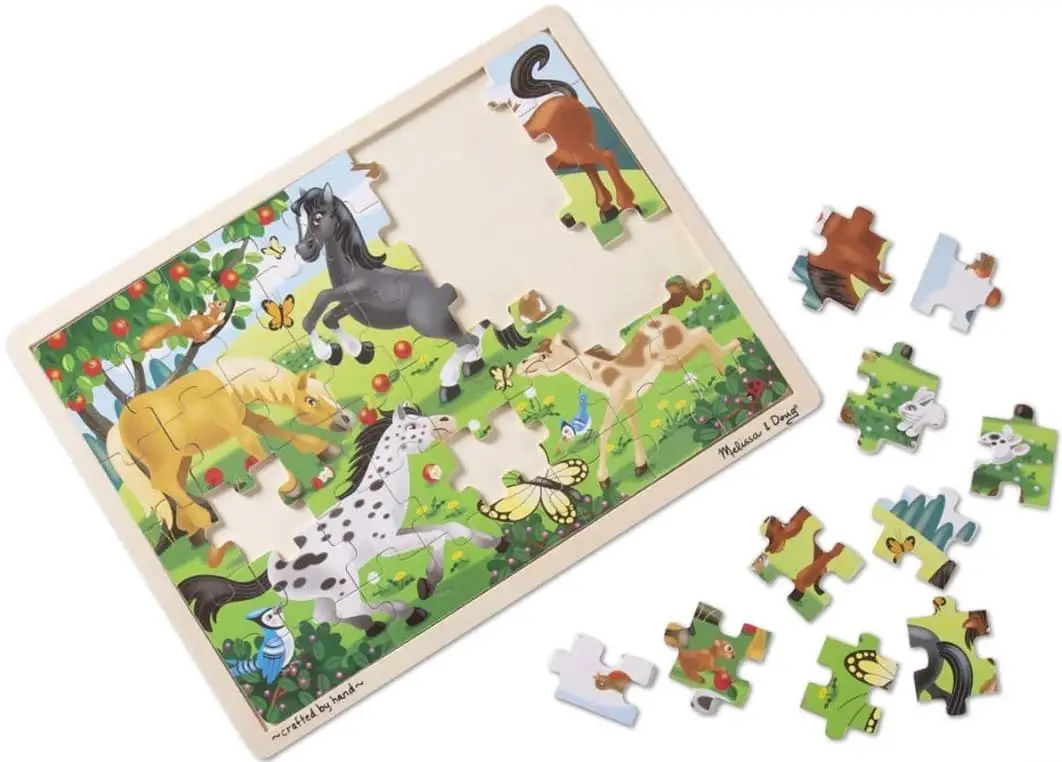 Пазл "Резвые лошади" от бренда Melissa&Doug познакомит вашего малыша с лошадьми.