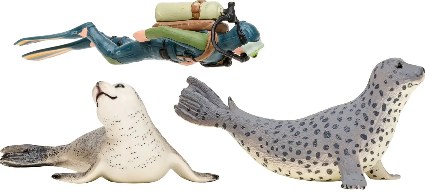 Фигурки игрушки серии Мир морских животных Кит, рыбка-молот, манта, морской леопард, дайвер