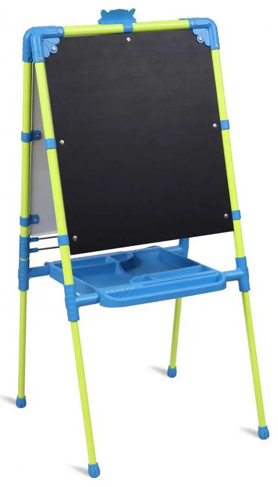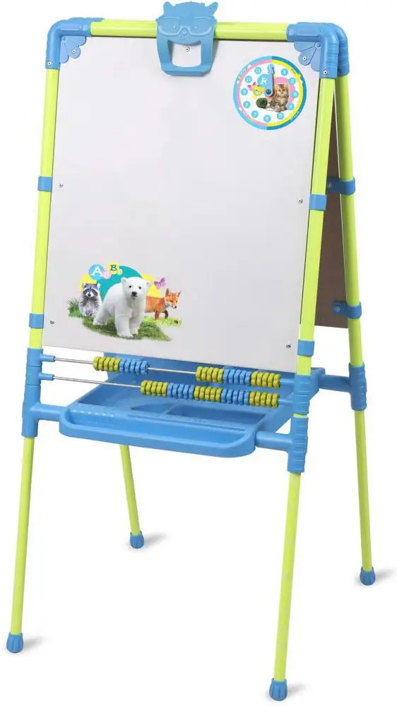 Двухсторонний мольберт с регулируемой высотой, на котором можно рисовать маркерами и мелом. Также он оснащен магнитной доской для использования магнитов, счётами и пеналом для канцелярских принадлежностей. Конструкция позволяет менять положение поверхности рисования по высоте в соответствии с ростом ребёнка.
