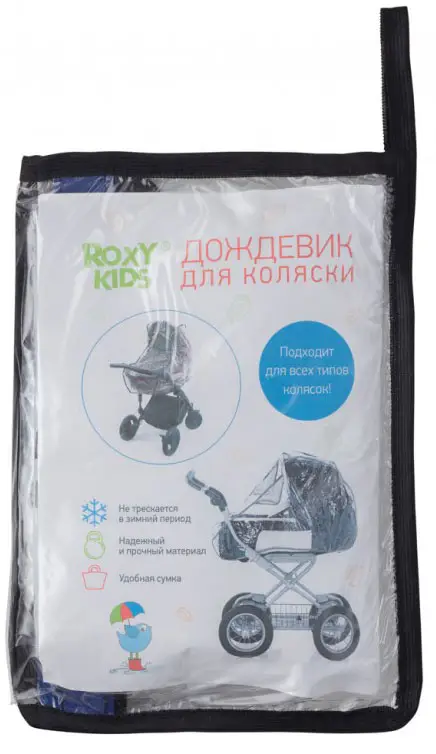 Дождевик для коляски Roxy защитит малыша и коляску от любой непогоды – дождя, снега, града или просто сильного ветра. Он полностью прозраче...