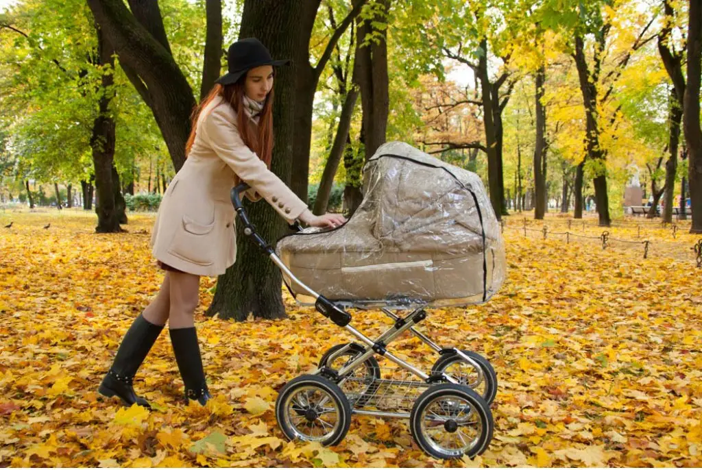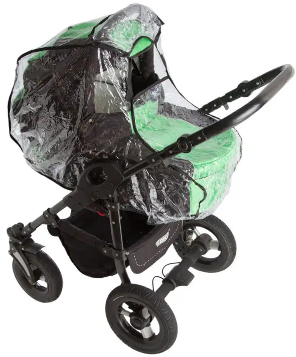 Дождливая погода — не помеха для прогулки, если у вас есть модный универсальный дождевик для коляски.