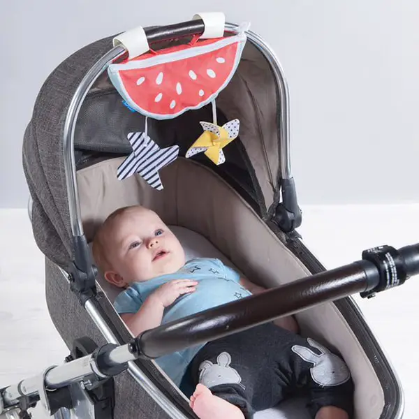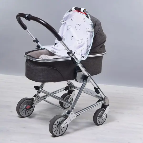 Чтобы ваш малыш мог комфортно поспать в своей коляске в солнечную погоду, закройте его от ярких лучей этой плотной накидкой. Она дополнена приятным бонусом в виде арбузика, который выполняет роль удобной сумочки для мелочей с плавной молнией на корпусе и подвешенными вертушками.