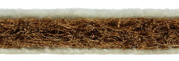 - кокосовая койра обеспечивает надёжную поддержку позвоночника, известна эластичностью и долговечностью;