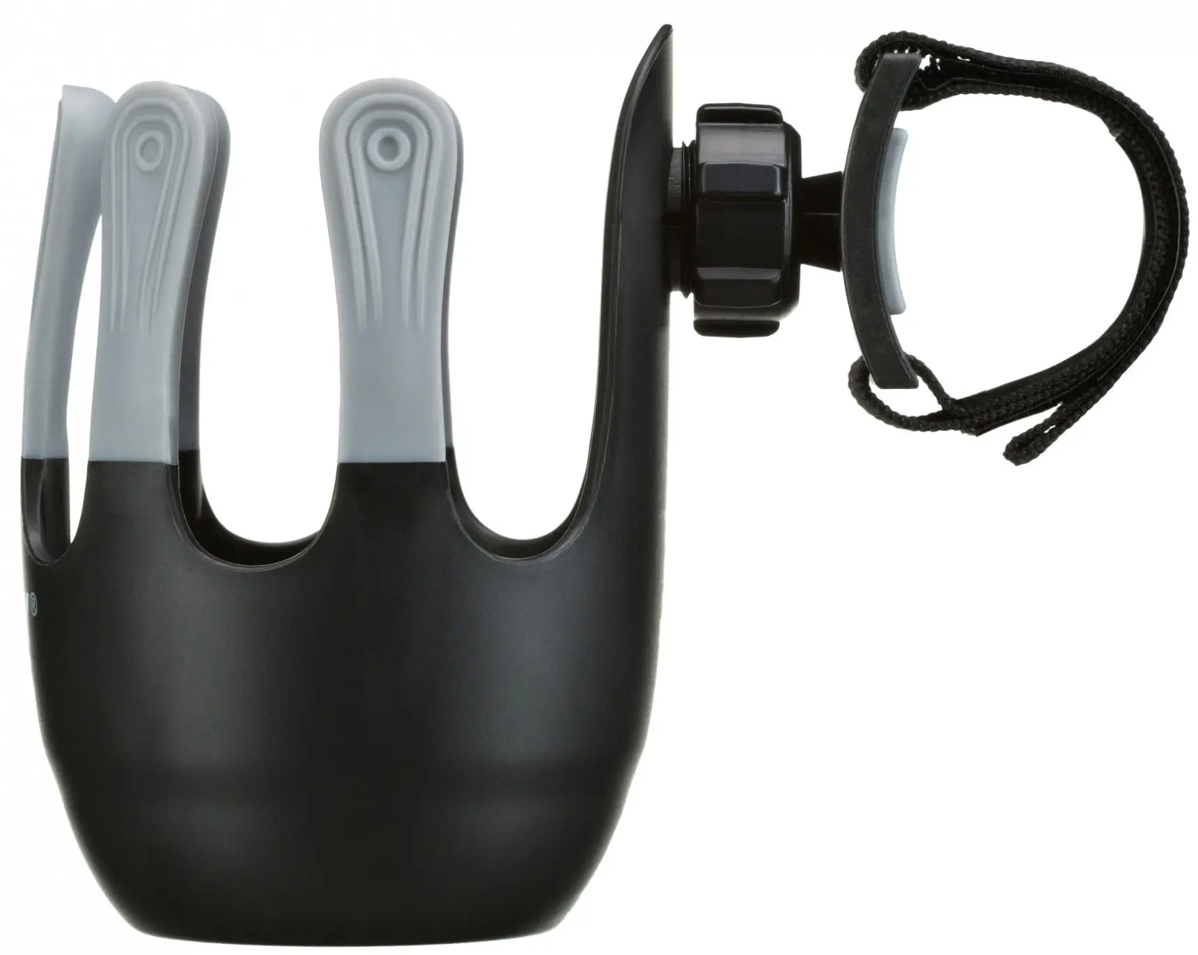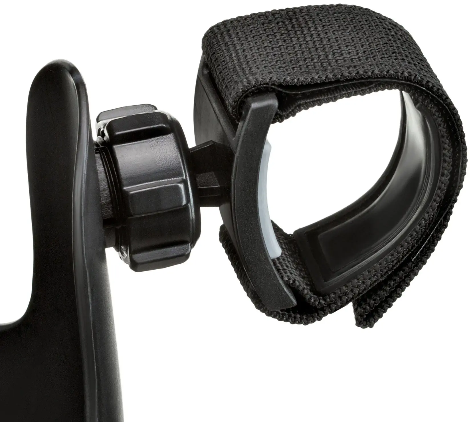 - крепление надёжно фиксируется на ручке при помощи липучки, которая подойдет даже для самых широких поручней, а специальная подложка из термопластичной резины позволяет избежать царапин;