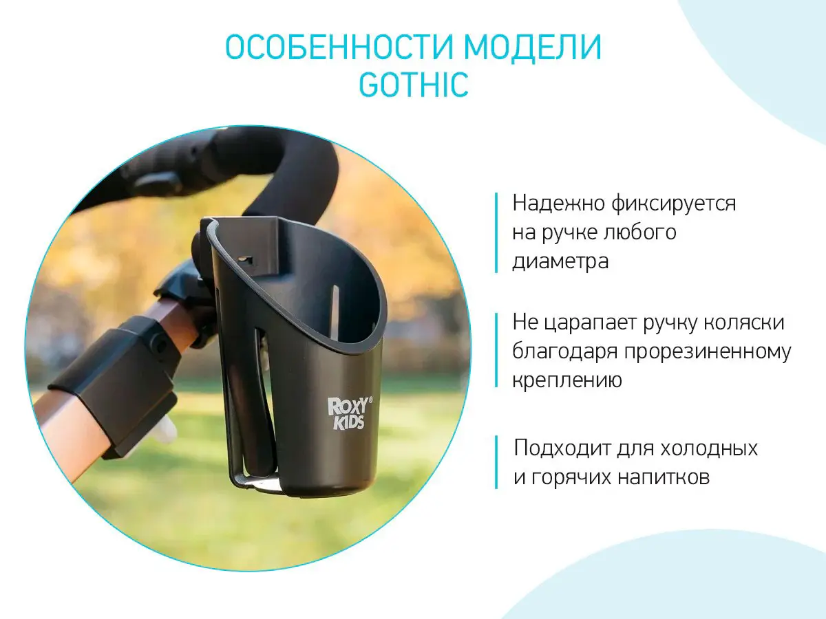 Подстаканник для коляски Gothic от Roxy Kids универсально подходит к любым типам детских колясок.