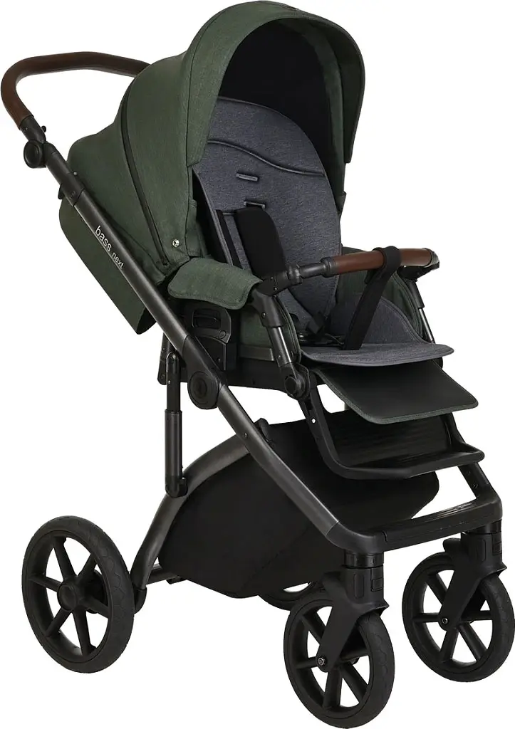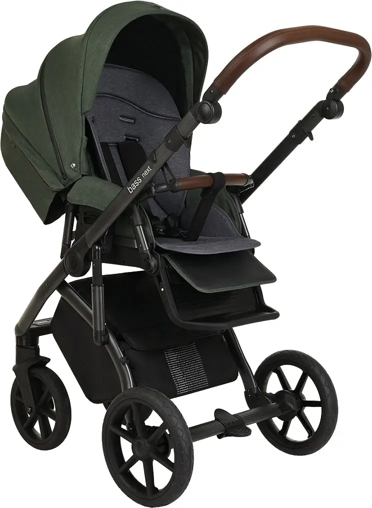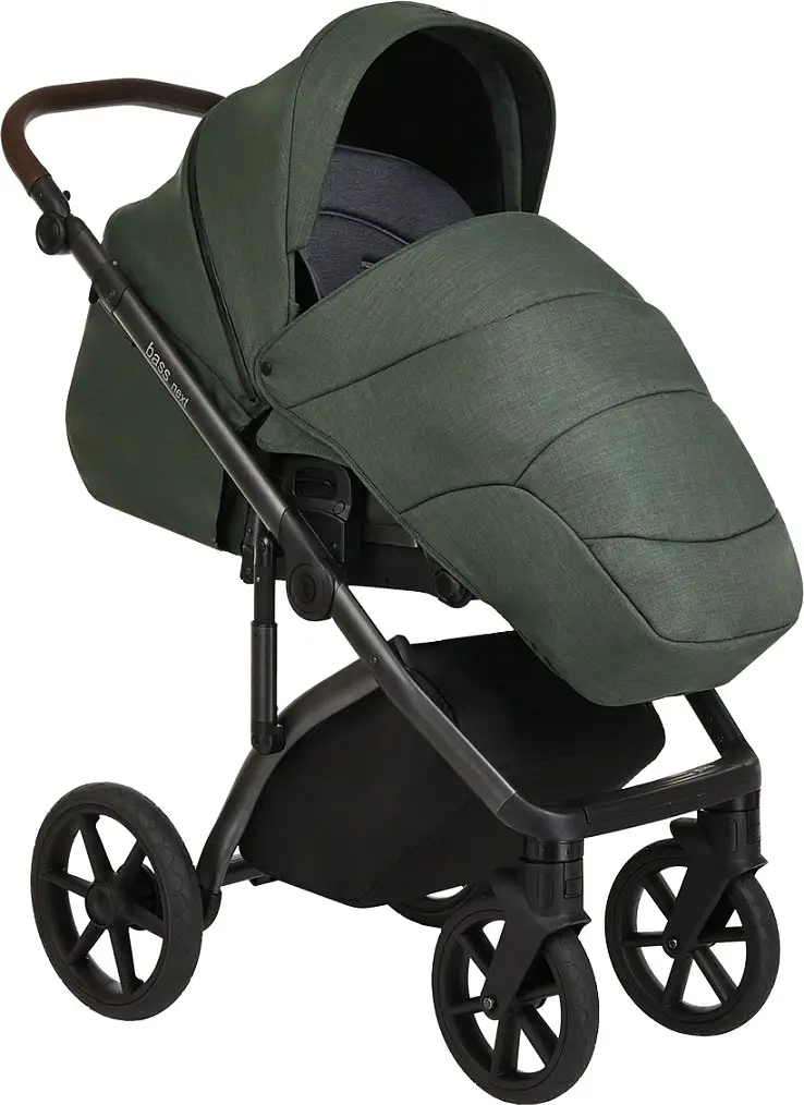Коляска 2 в 1 Roan Bass Next короб, прогулка Night Green/Black ручка темно-коричневая, 2 места