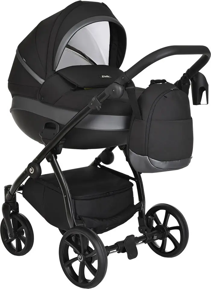 Коляска 2 в 1 Tutis Nanni короб, прогулка, графит металлик, кожа