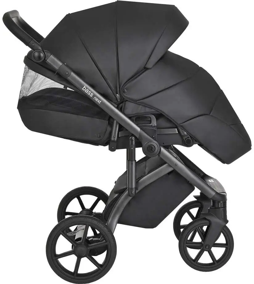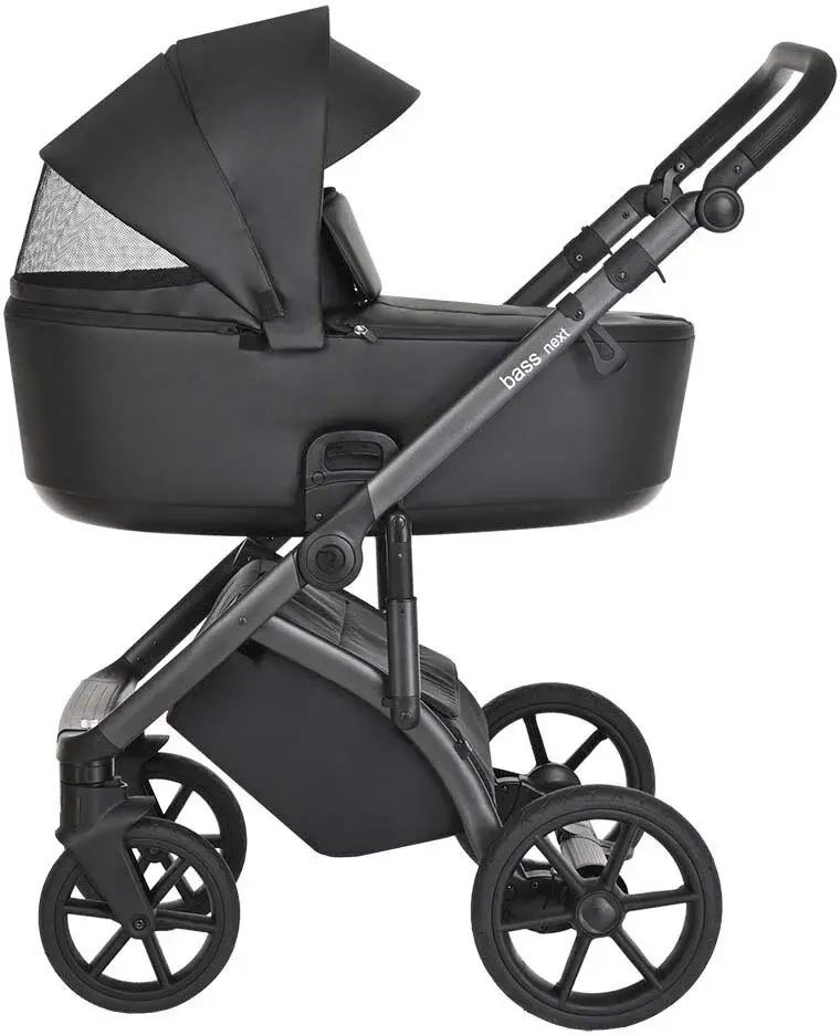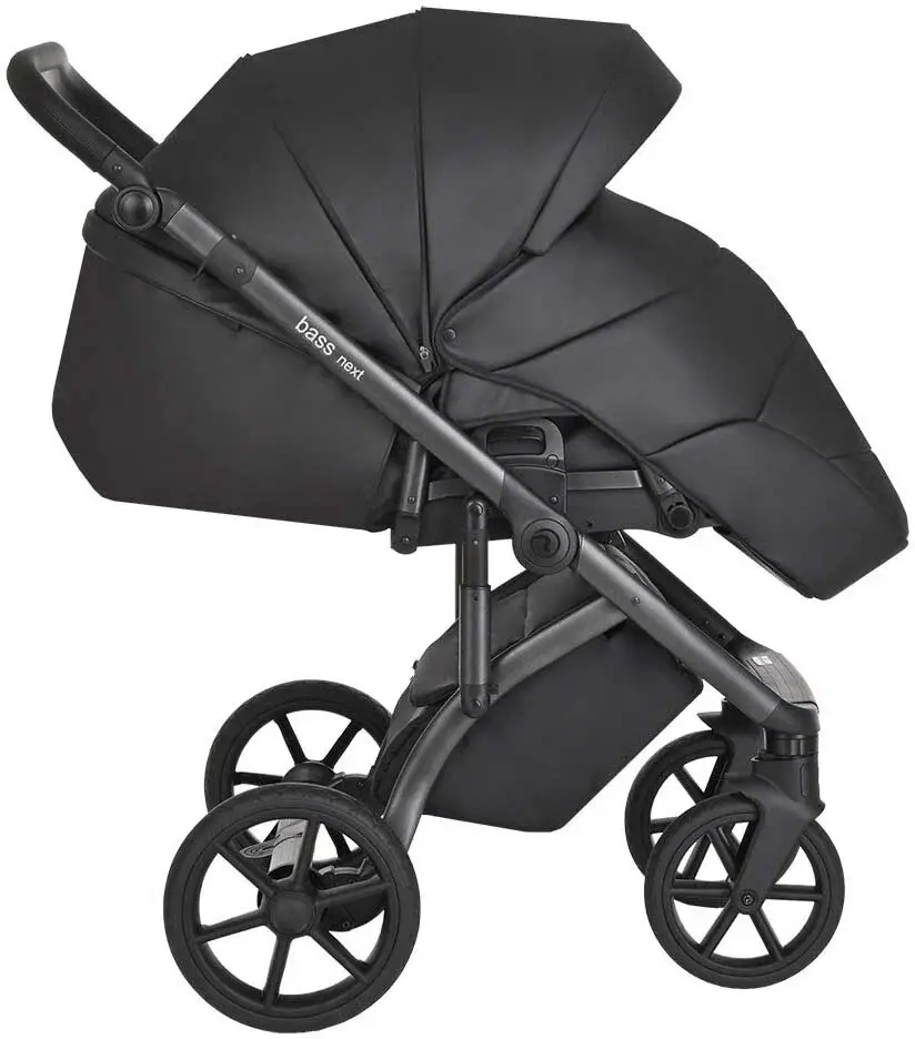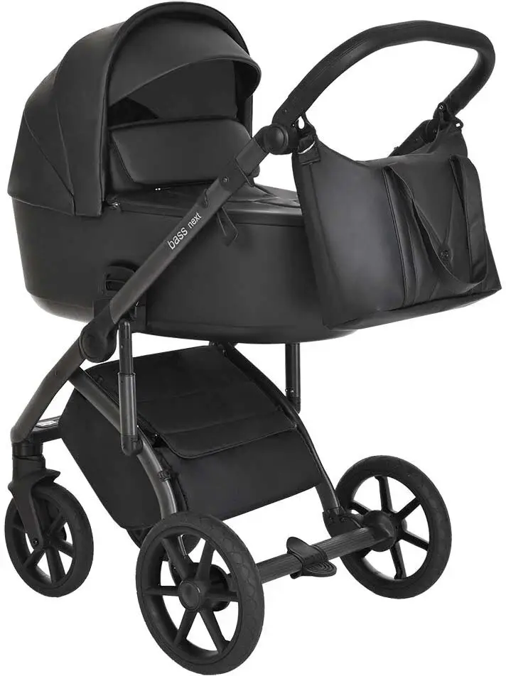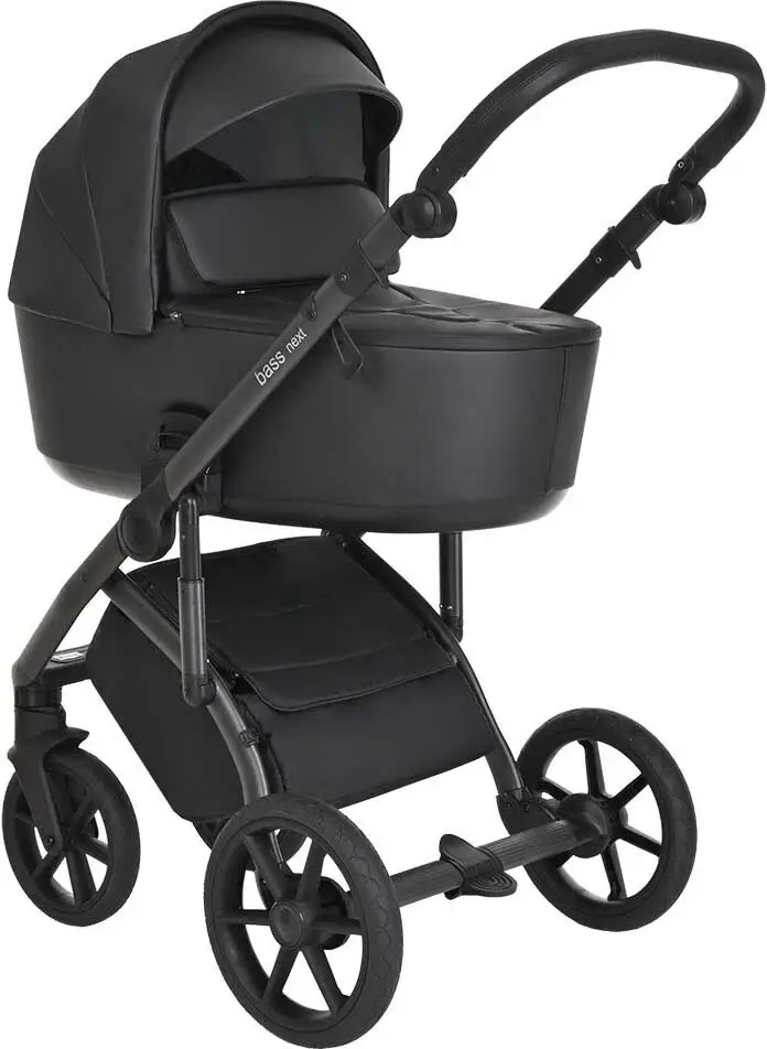 Коляска 2 в1 Bass Next Roan, кожа Black/Black/ручка черная, RN088/1