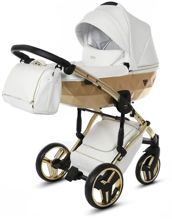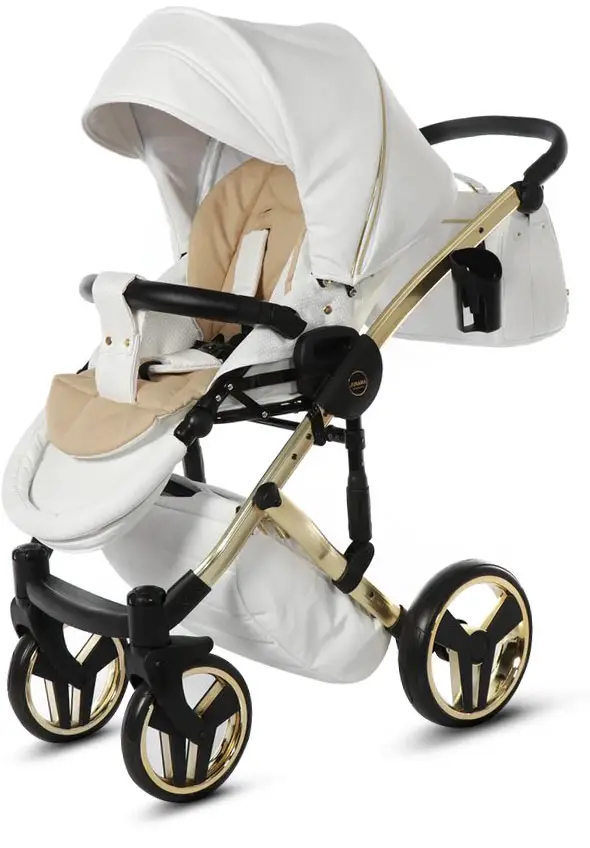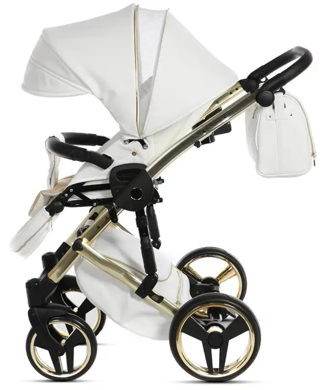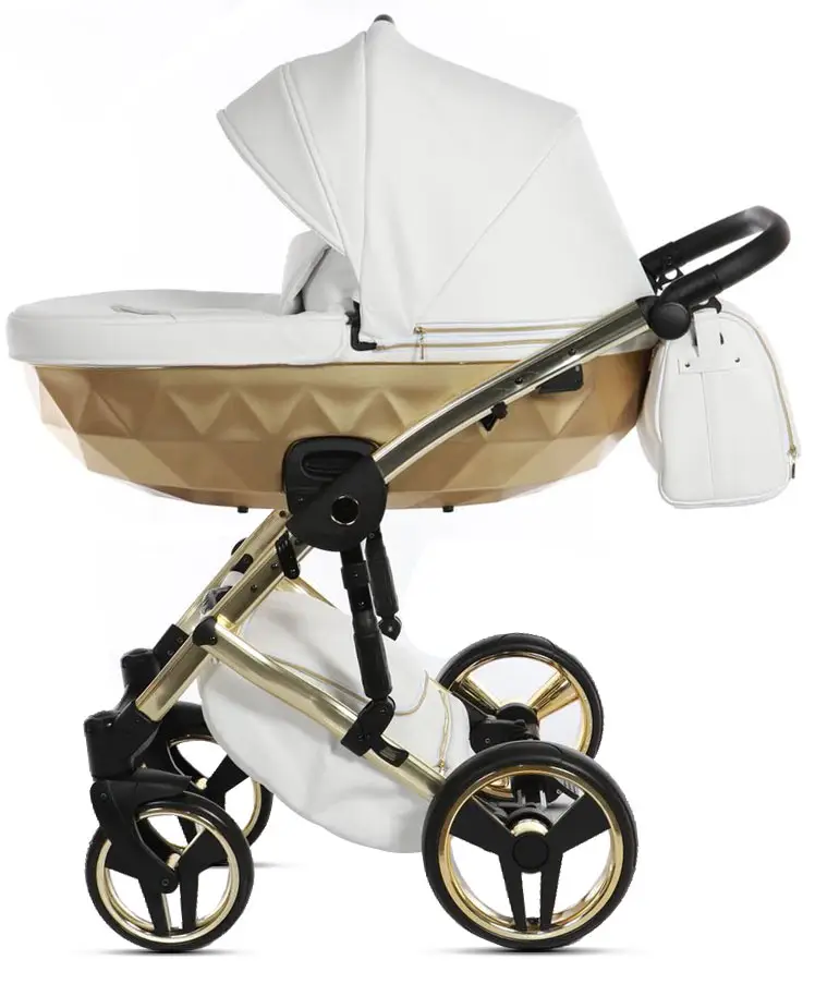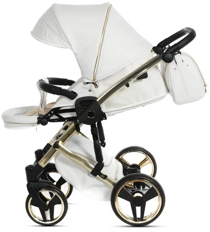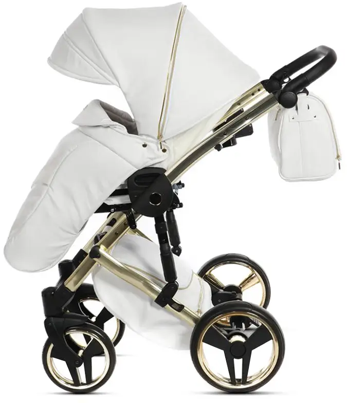 Коляска Junama Mirror Satin 2 в 1 белый, короб и рама матовое золото