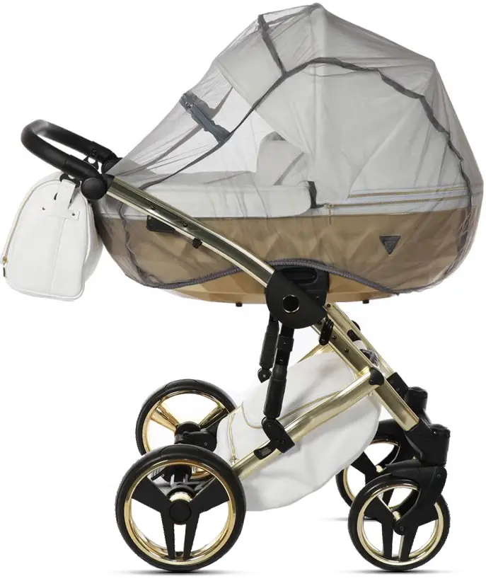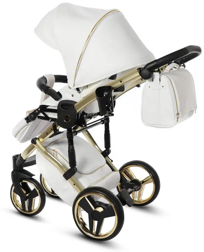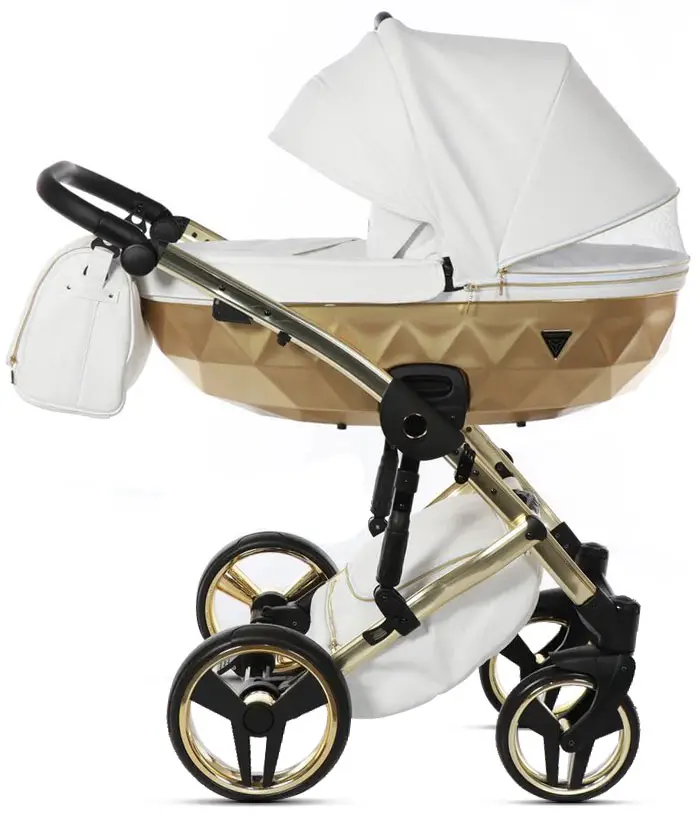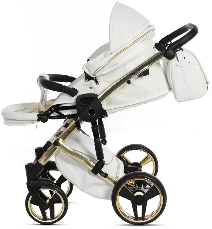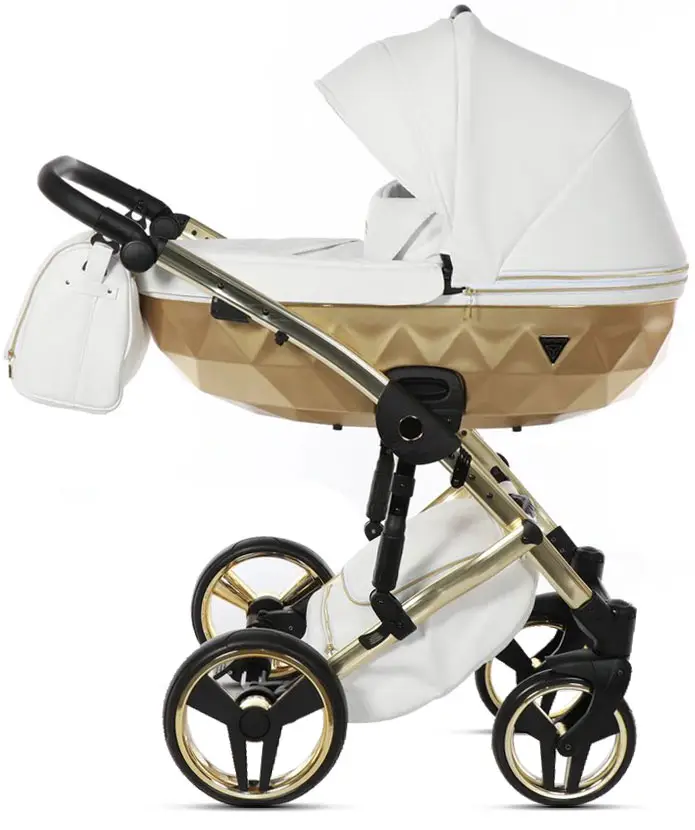 Коляска Junama Mirror Satin 2 в 1 белый, короб и рама матовое золото