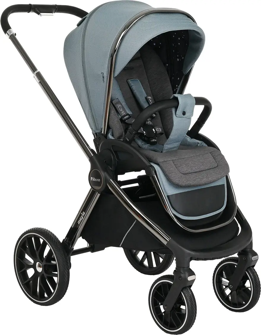 Pituso Mayla – это ультрасовременная и элегантная коляска 2 в 1, созданная специально для маленьких пассажиров. Просторная и комфортная люлька оснащена мягким матрасиком и регулируемым подголовником. Прогулочный блок также имеет несколько положений, ручку с регулировкой высоты и пятиточечные ремни безопасности. Алюминиевое шасси дополнено антишоковой амортизацией и функцией блокировки передних колёс.