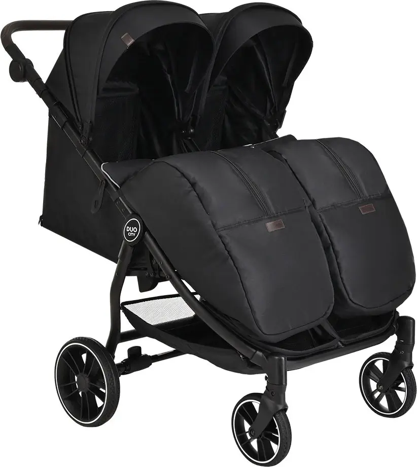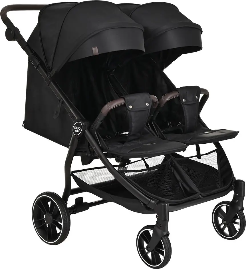 Коляска детская Duocity Pituso для двойни, прогулочная, Black/Черный/PU