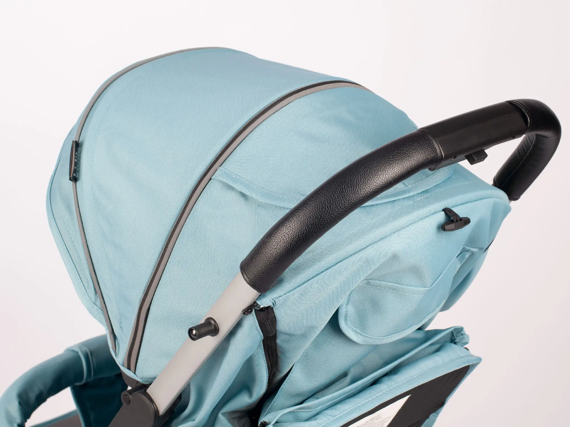 Верхняя часть коляски выполнена из инновационного материала с повышенной износостойкостью и устойчивого к выцветанию.