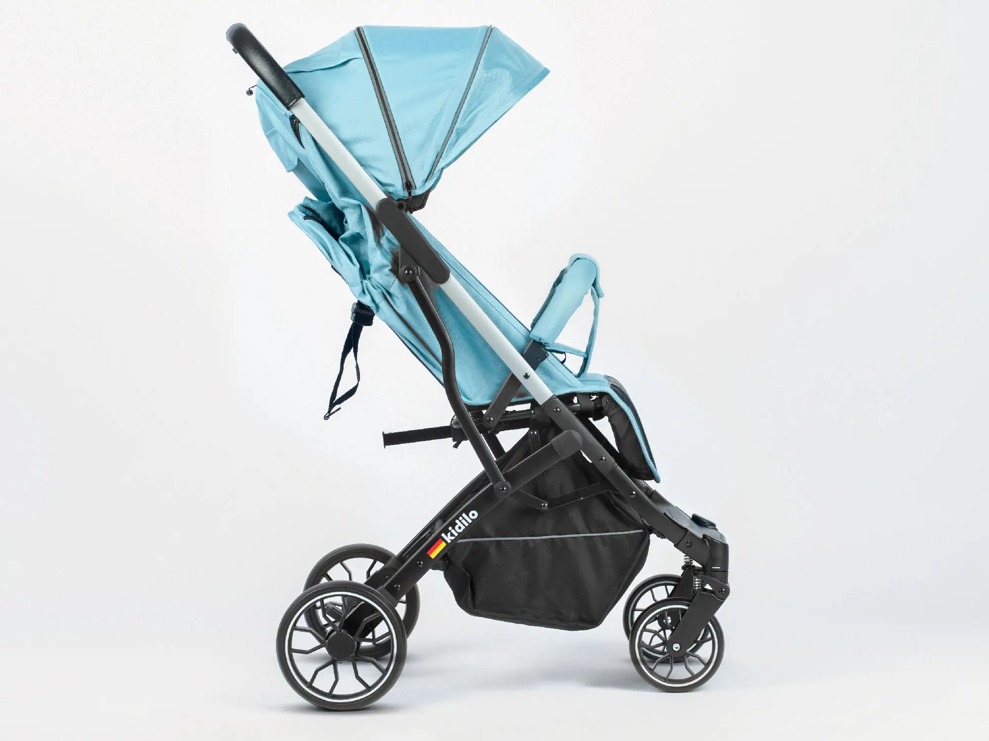 Прогулочная коляска Kidilo создана для безусловного комфорта в путешествиях и прогулках любого формата детей в возрасте от 7 месяцев и до 3х лет. Отличительной особенностью коляски является горизонтальное положение для беззаботного сна.