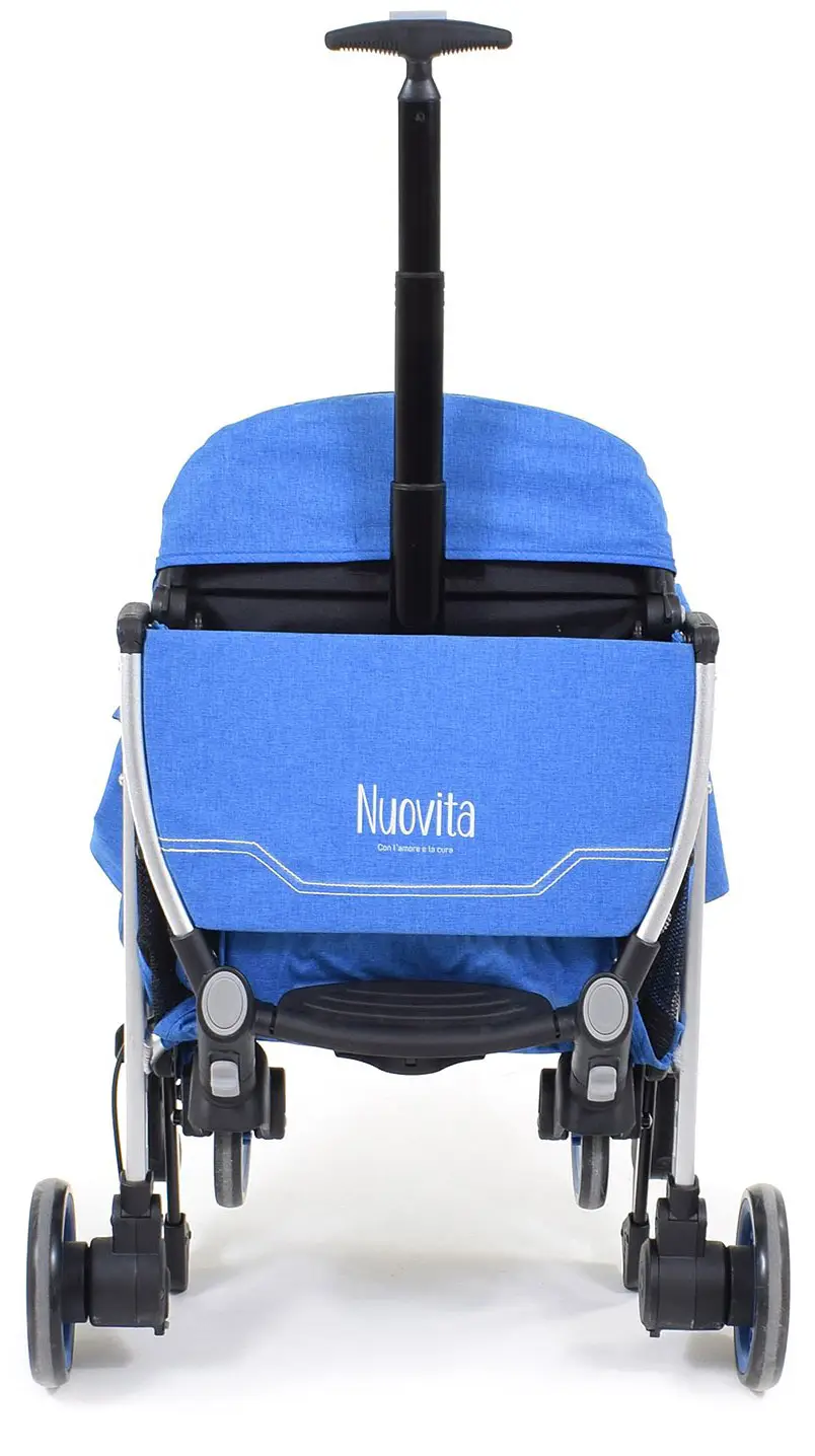 Прогулочная коляска Nuovita Giro в сложенном виде становится сумкой-тележкой на колесиках с выдвижной телескопической ручкой. Трансформацию ...