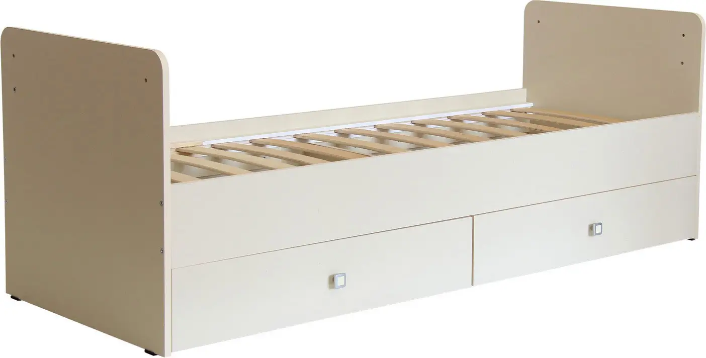 5 вместительных выдвижных ящиков для одежды и игрушек – 2 больших ящика в кровати, 3 ящика в тумбе.