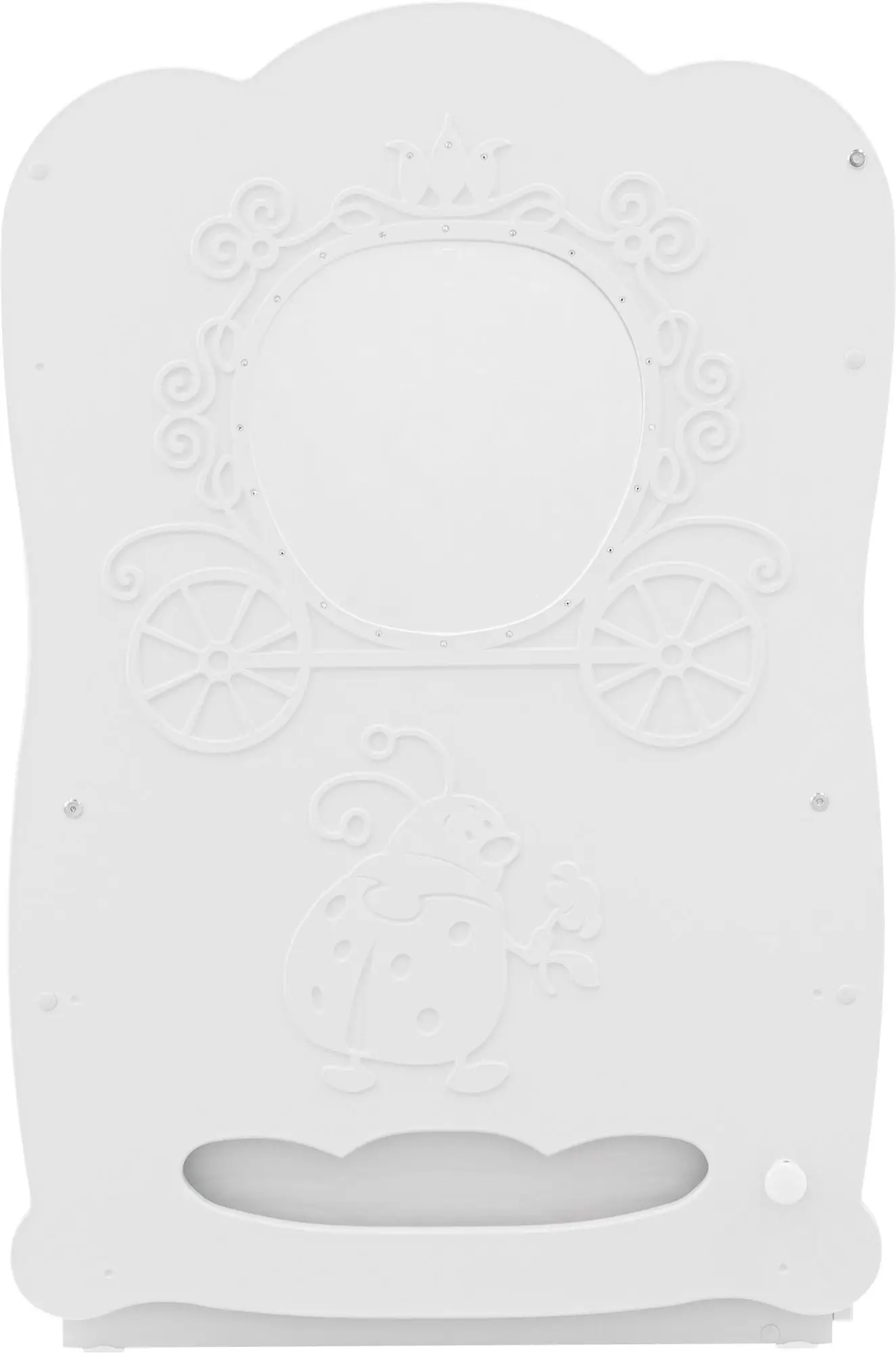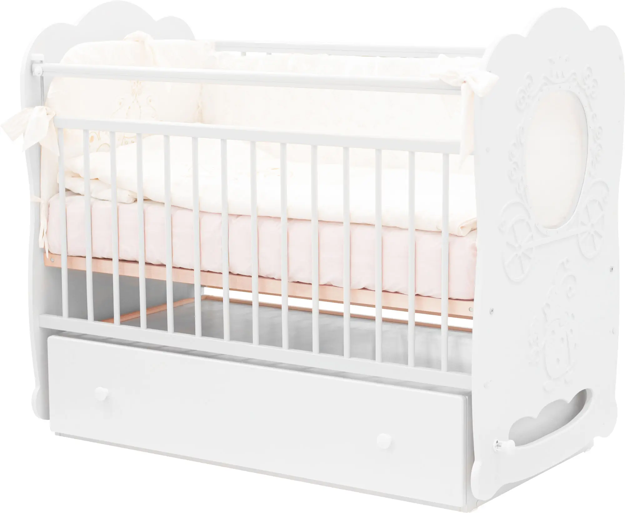 Удобная и красиваядетская кроватка Островок Уюта «Карета» с поперечным маятником, украшенная кристаллами Swarovski.