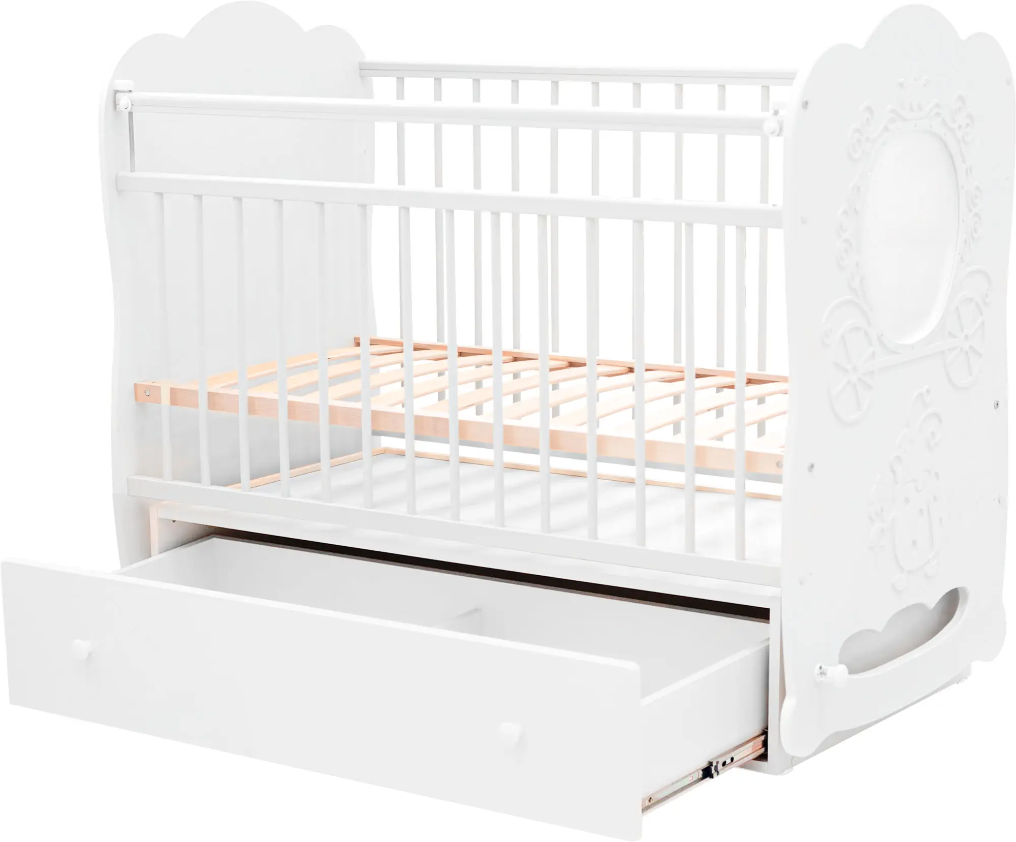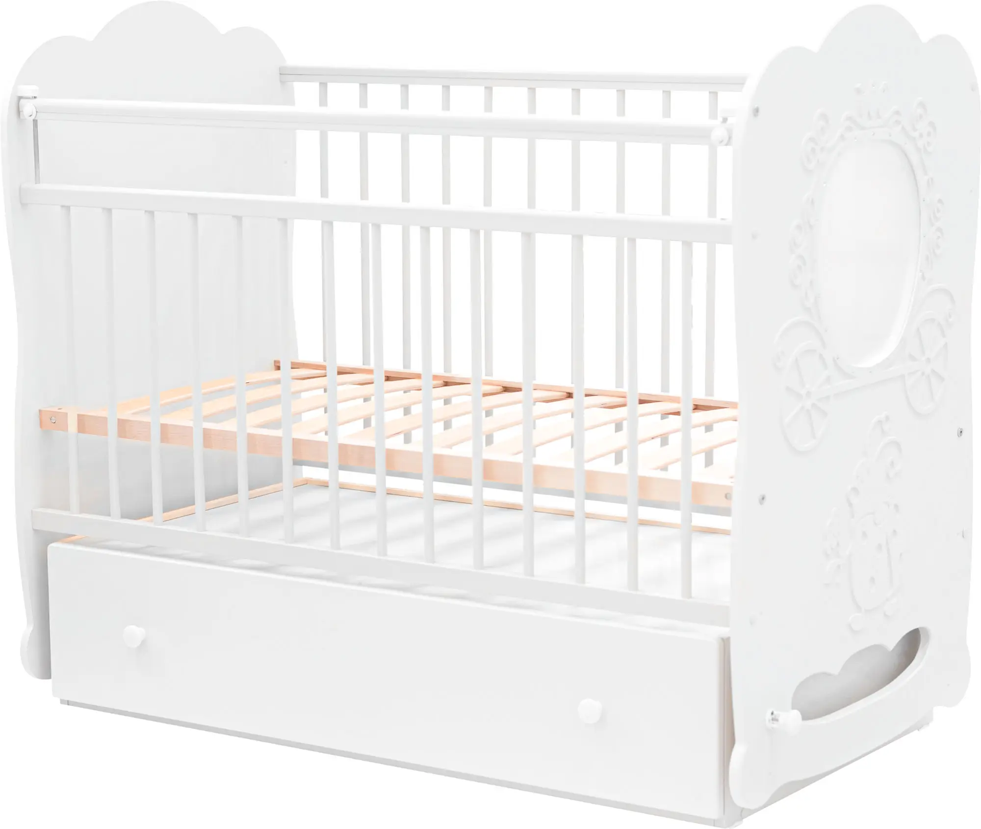 Кровать детская Островок уюта Карета маятник поперечный с ящиком, белый
