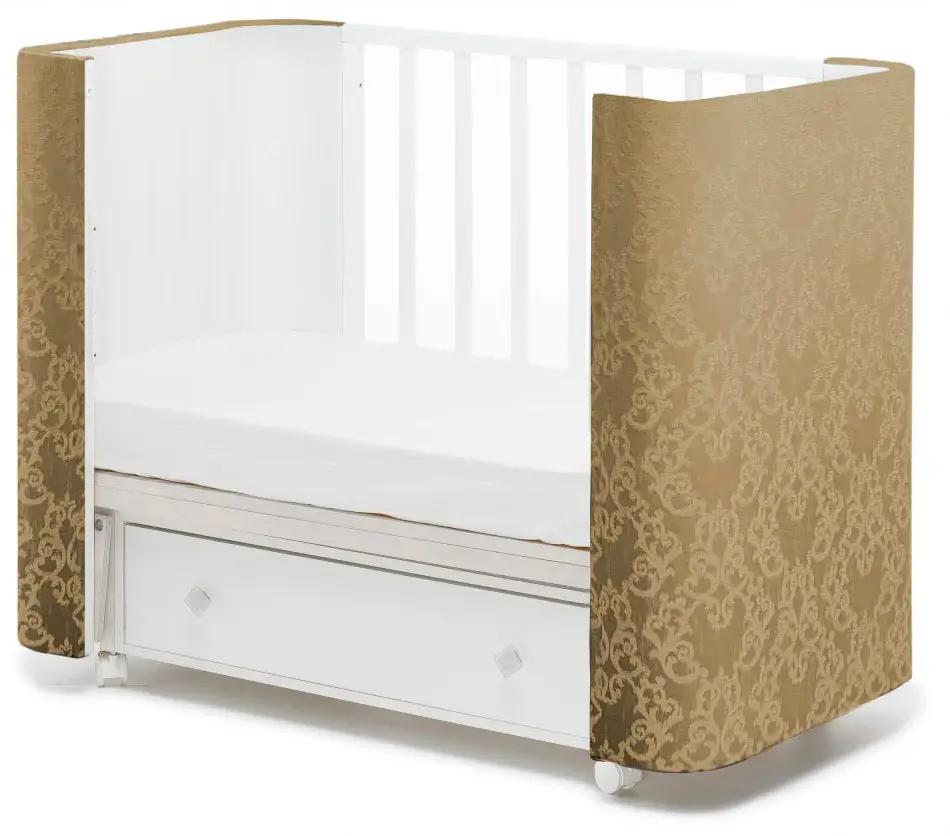 Классическая с овальными углами кроватка изготовлена из высококачественных экологически чистых и гипоаллергенных материалов.