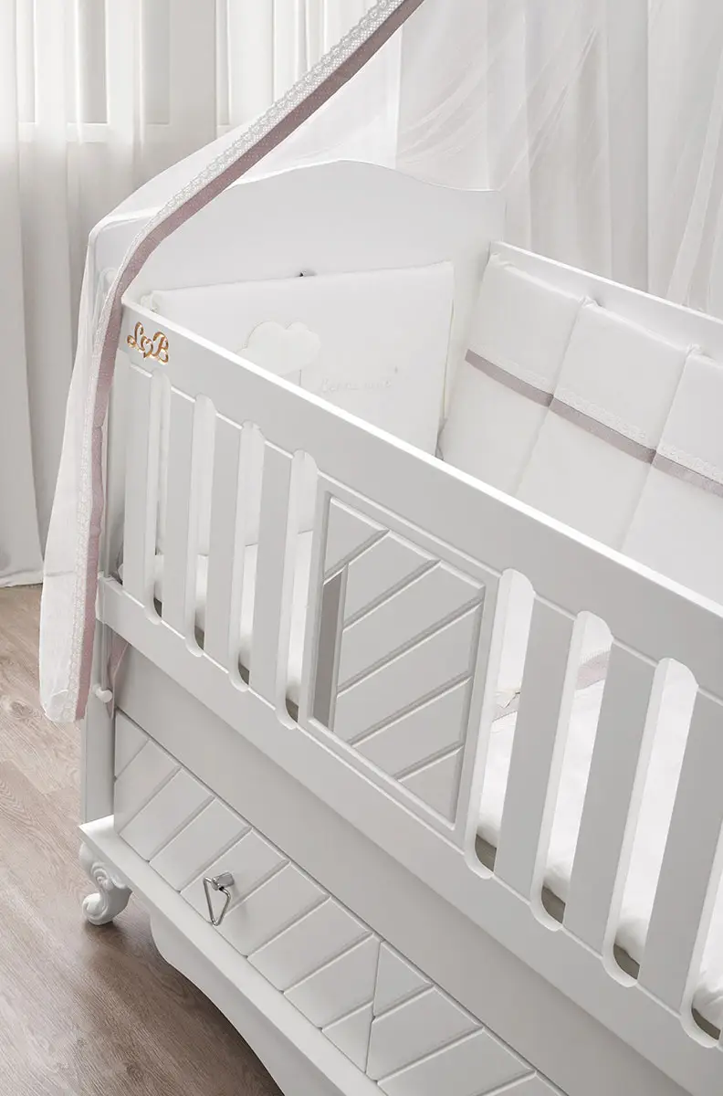 Кроватка Sofia от компании Lovely baby универсальный вариант, который подойдёт многим семьям с младенцами. Конструкция кроватки состоит из регулируемого ложа – 2 уровня высоты, спинок, бортиков, механизма-маятника. Имеются 2 вместительных выдвижных ящика.