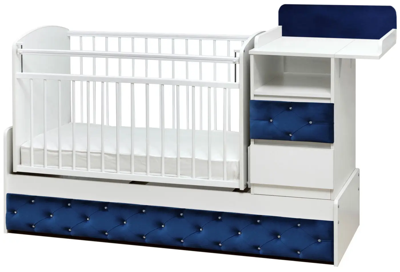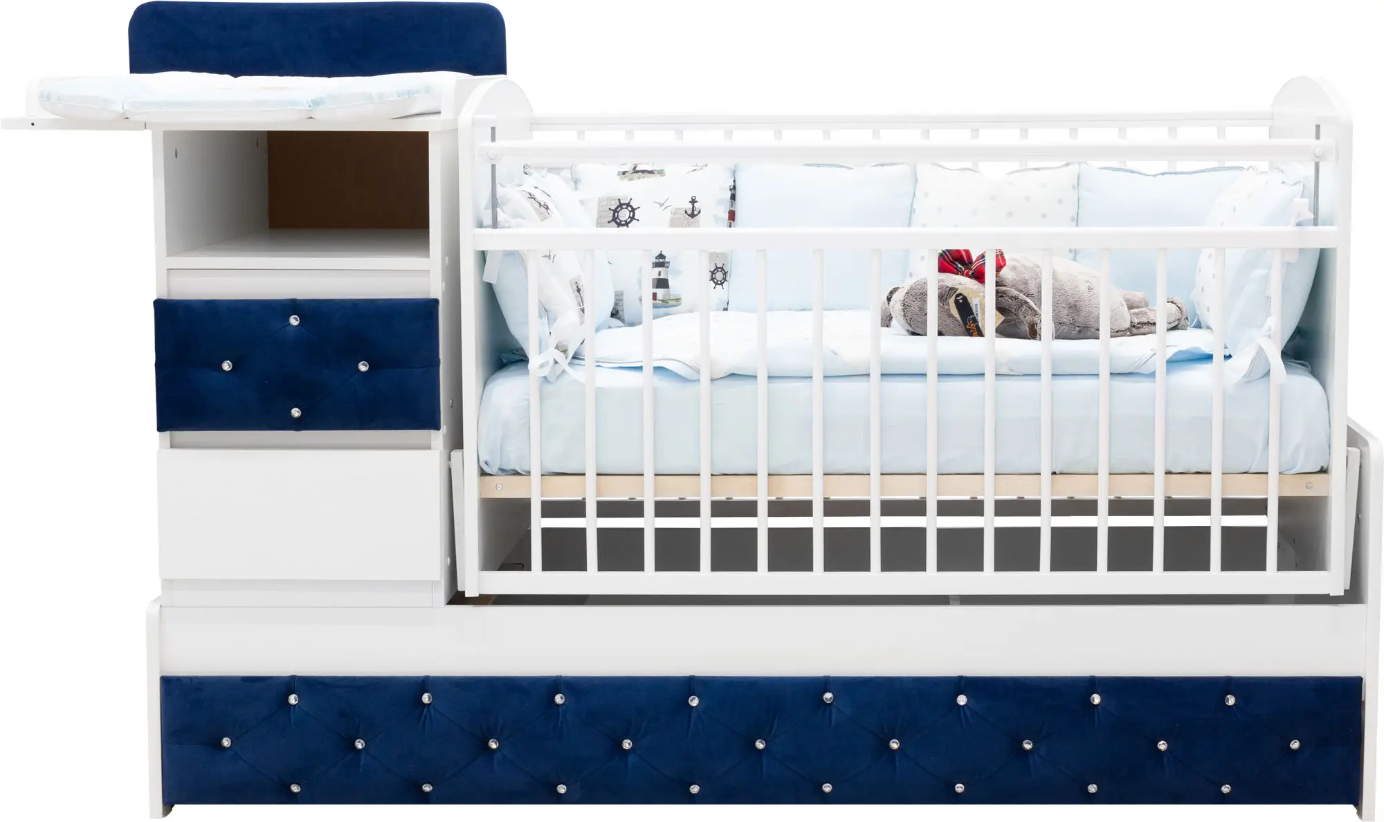 Кровать-трансформер Островок уюта Дива с маятником поперечным, синий велюр, белый