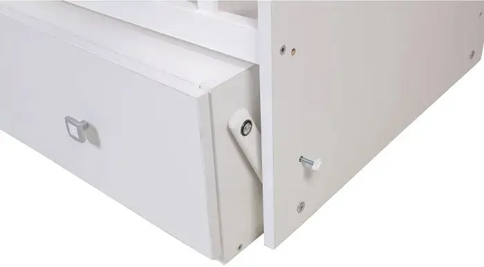 Удобный и просторный ящик позволяет хранить как игрушки, детские вещи, так и постельные принадлежности, а шариковые направляющие полного выдвижения облегчают доступ к наполнению ящика и позволяют максимально продуктивно использовать его пространство.