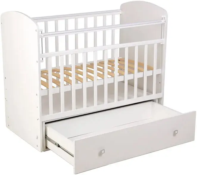 Кроватка детская Фея 750 выполнена в классическом дизайне и универсальном белом цвете, прекрасно подойдёт для любого интерьера детской комнаты.