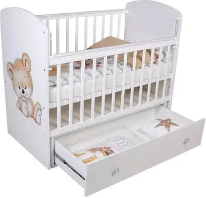 Кроватка детская Фея 750 Медвежонок выполнена в классическом дизайне и универсальном белом цвете, прекрасно подойдёт для любого интерьера детской комнаты.