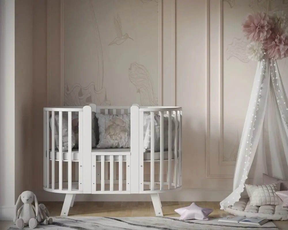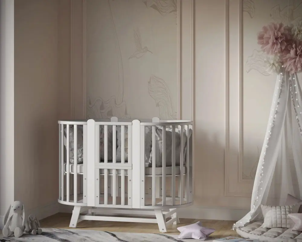 Кроватка детская Verona - многофункциональная кроватка, которая сделает сон вашего малыша безопасным и комфортным. Её круглая форма придаёт уникальный дизайн и обеспечивает безопасность. Кроватка изготовлена из экологичной древесины, а массивные стойки из натурального бука делают ее прочной и надёжной.