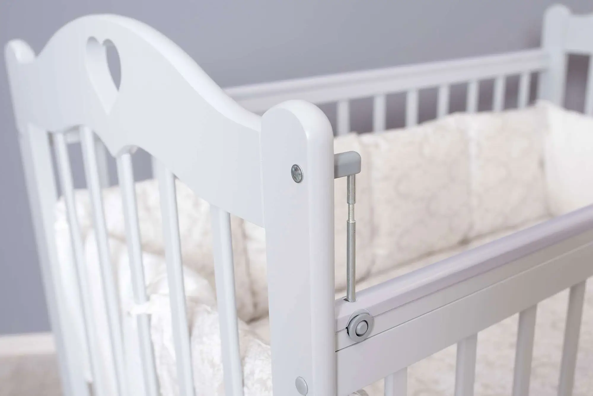 Кроватка оснащена универсальным маятником. Но, если маятник не нужен, или ребёнок научился вставать в кроватке, то маятник можно легко заблокировать. Маятник поможет укачивать новорождённого в кроватке.