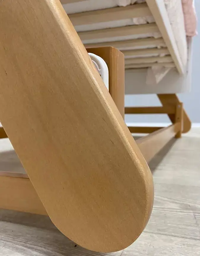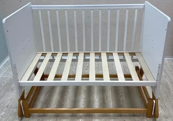 - на кроватке установлен уникальный поперечный маятниковый механизм, позволяющий очень нежно укачивать малыша;