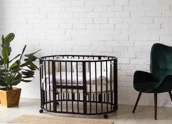 Изготовлена из массива берёзы. Благодаря круглой форме, колёсикам и лёгкой, но прочной древесине, из которой изготовлена кроватка мама может делать перестановки мебели хоть каждый день. Такая модель считается наиболее безопасной – у неё отсутствуют острые углы, что сводит к минимуму риск травм. Форма кроватки способствует более быстрому развитию ребёнка, так как в ней открывается обзор на 360°. По мере того, как растёт малыш, вместе с ним растёт и кроватка.