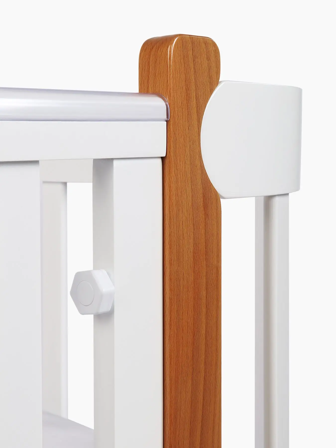Реечное ортопедическое ложе создаёт дополнительную вентиляцию для матраса. Полипропиленовые накладки на бортиках защитят зубки малыша, когда они начнут прорезываться.