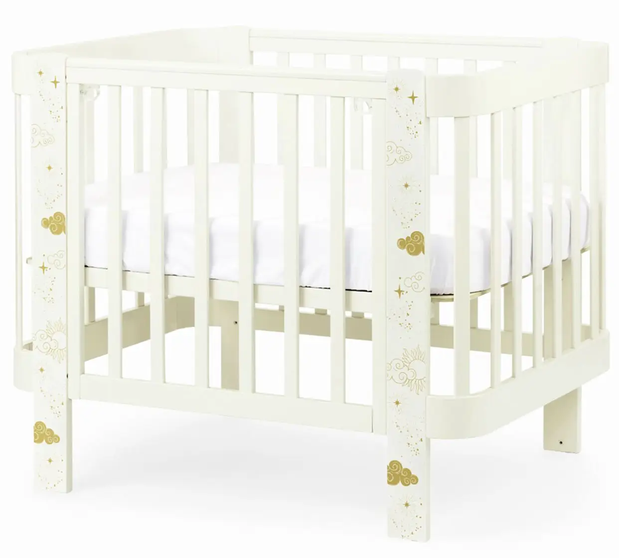 Кровать имеет 3 уровня положения ложа по высоте. Боковая стенка съёмная. Комплект расширения позволяет увеличить люльку до полноразмерной детской кроватки.