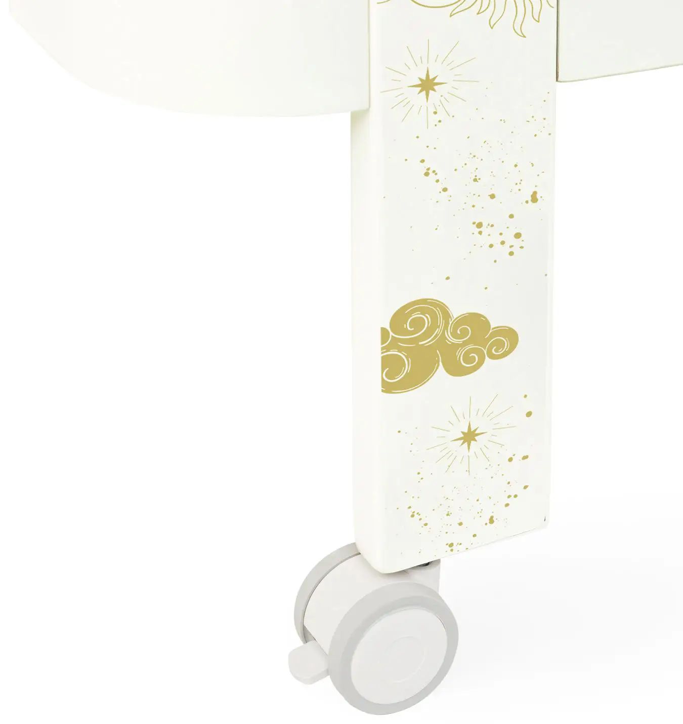 Когда ребёнок подрастёт, кровать можно установить на колёсики для статичности и удобства перемещения по квартире. Колёса с фиксаторами движения.