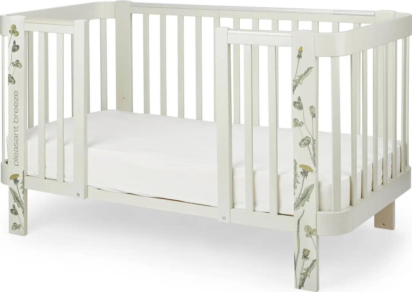 Кровать имеет 3 уровня положения ложа по высоте. Боковая стенка съёмная. Комплект расширения позволяет увеличить люльку до полноразмерной детской кроватки.