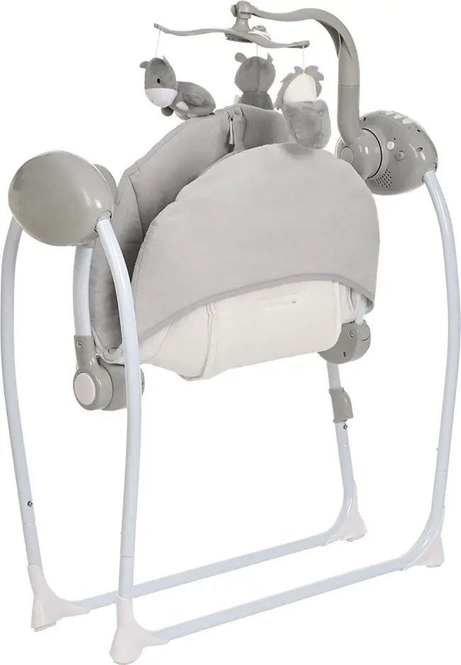 Устойчивая и надёжная конструкция быстро складывается и весьма компактна, удобна в транспортировке. Электронная система контроля и управления автоматически распознает вес и центр тяжести ребёнка при изменении положения, стабилизирует и подстраивает скорость качания под эти показатели.