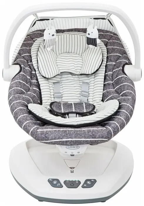 Успокаивайте и убаюкивайте ребёнка с помощью Graco Move With Me. Эти компактные качели оснащены встроенной ручкой для переноски и 2-ступенчатым механизмом складывания для компактного хранения. 2 угла наклона обеспечивают малышу комфорт, когда он спит или бодрствует, в то же время, 2 скорости вибрации и 5 скоростей укачивающих движений из стороны в сторону успокаивают ребёнка. 10 вариантов музыки, 5 встроенных звуков природы, а так же возможность подключения MP3 плеера и слушать музыку из вашей личной коллекции.