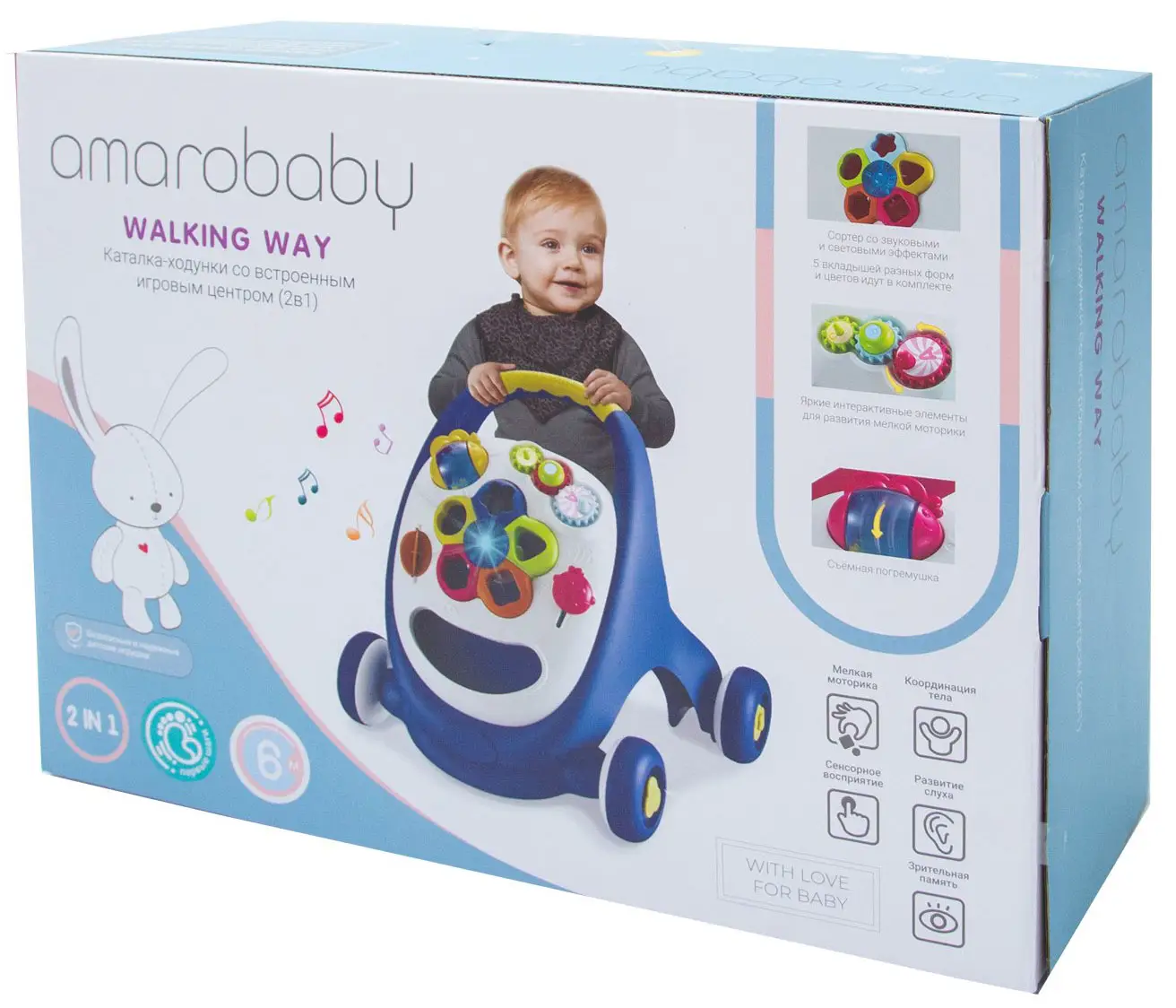 Walking Way от Amarobaby – это универсальный, многофункциональный игровой центр, воплощенный в яркой каталке-ходунках.