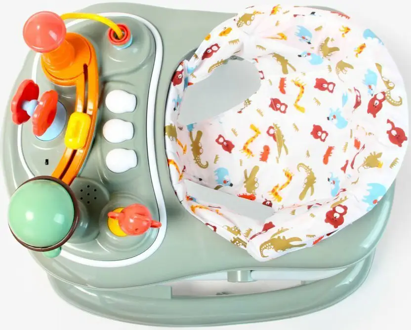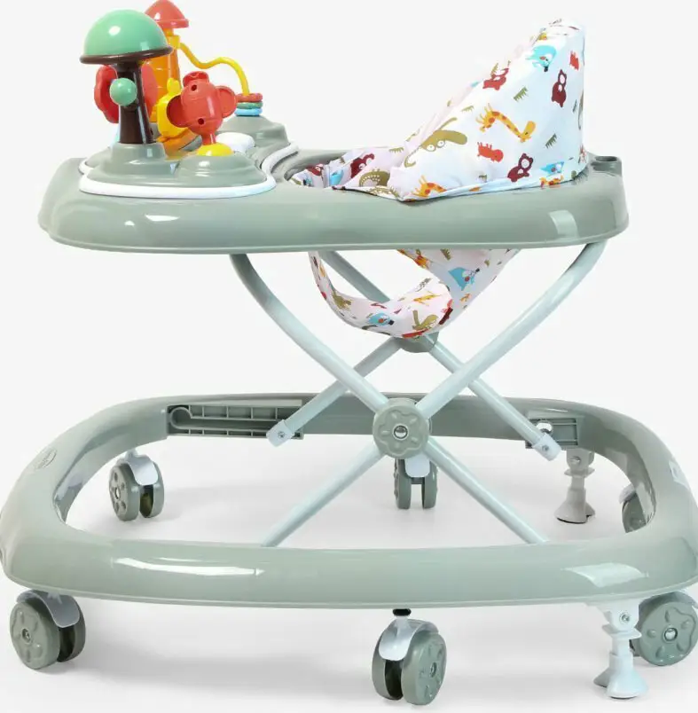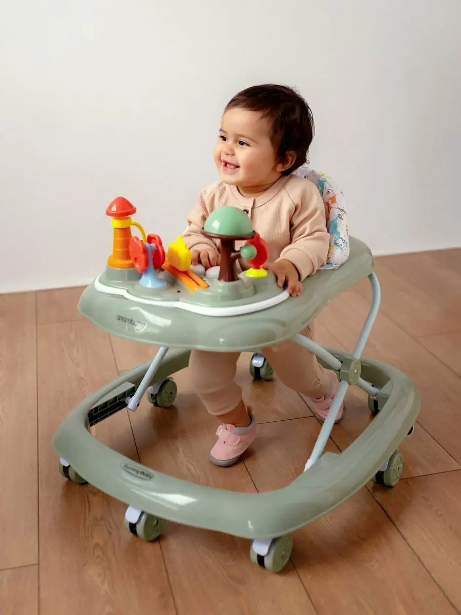 Ходунки выполнены из прочного металла и пластика обеспечивает устойчивость и безопасность во время передвижения малыша. С семью колёсиками и двумя стопперами, детская каталка гарантирует плавное передвижение и удержание в нужном месте. Мягкое сиденье обеспечивает комфорт малышу на протяжении всего времени использования.