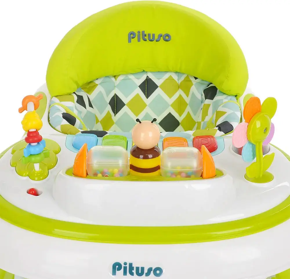 Ходунки Pituso Пчёлка с эргономичной формой сидения с поддержкой спины обеспечит правильную посадку ребёнка. Съёмная музыкальная панель с игрушками способствует развитию у малыша мелкой моторики, можно использовать отдельно от ходунков.
