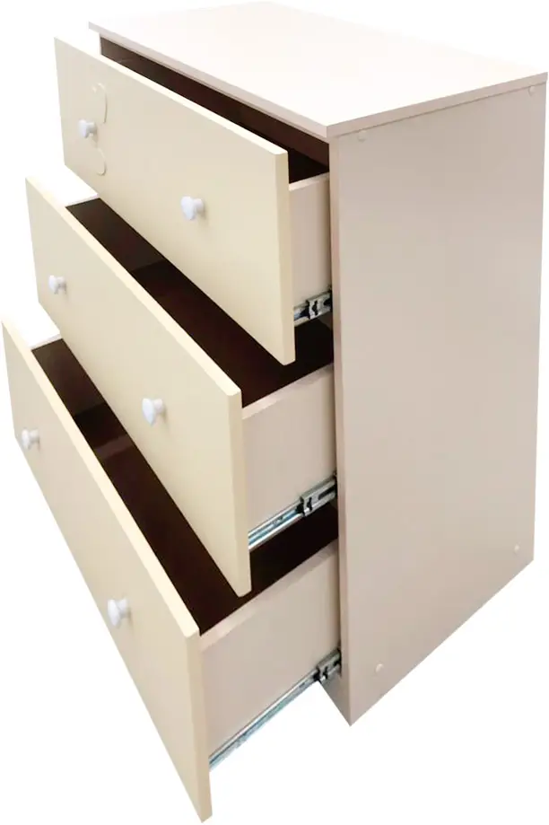 Все материалы, применяемые при изготовлении – экологически чистые и гипоаллергенные. Комод имеет 3 больших выдвижных ящика на прочных напра...